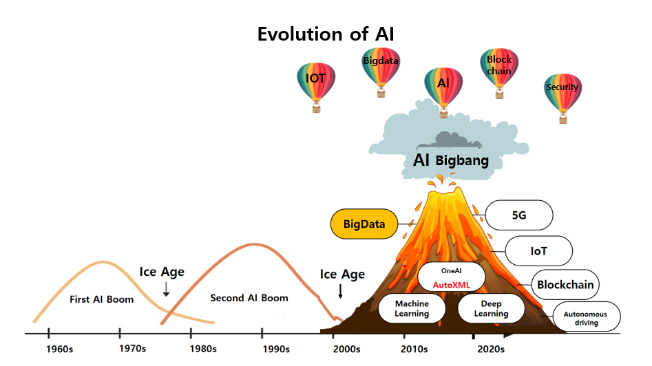 3KOneAI는 AutoXML을 핵심기술로 사용하여 글로벌 산업분야에 공통으로 적용되는 표준 AI플랫폼을 제공하며,
