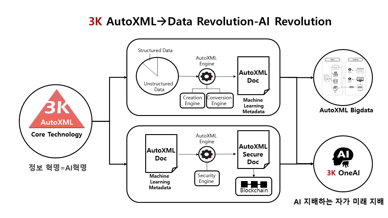 3KOneAI에 활용되는 AutoXML은 W3C가 제정한 국제 표준 마크업 언어인 XML을